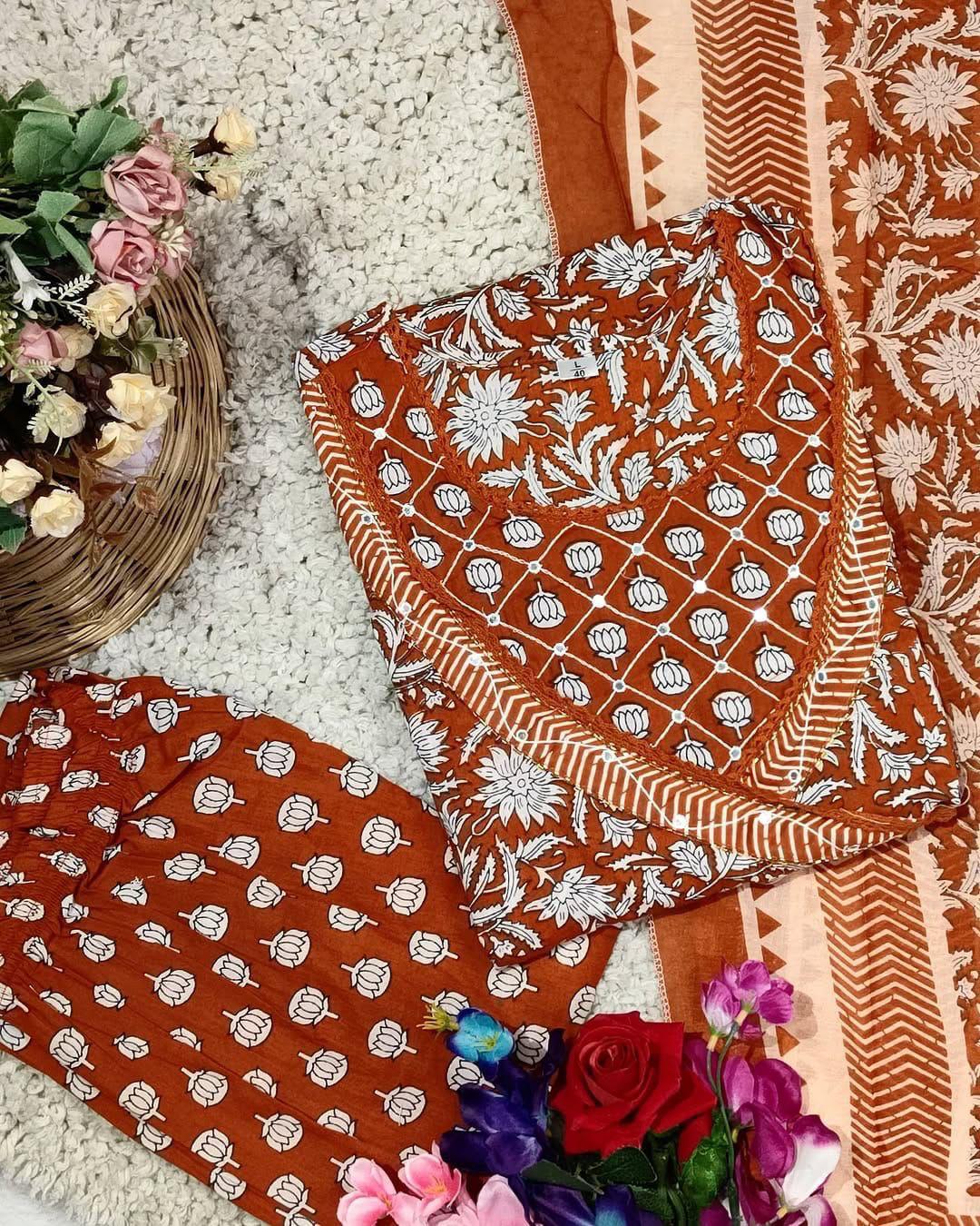 New  Anarkali kurta set with new style in saganeri  print